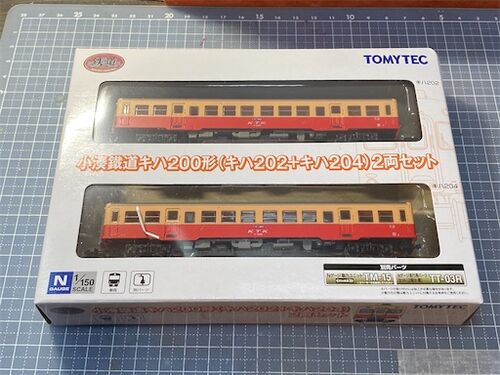 皆さま、こんにちは 「大体」で楽しむ鉄道模型 です。 ↑今回のお題は小湊鐵道のキハ200形。こちらは、令和3(2021)年3月に発売になったTOMYTECの鉄道コレクション「小湊鐵道キハ200形(キハ202+キハ204)2両セット」です。車両の定価は税込3,520円、家電量販店…