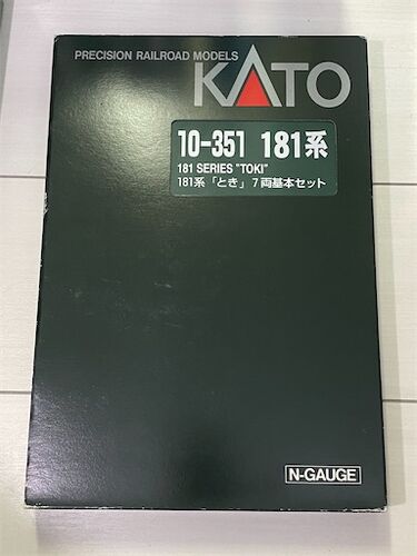 皆さまこんにちは 「大体」で楽しむ鉄道模型 です。 ↑今回のお題はちょっと古いKATOの181系です。何年か前にネットオークションで入手した中古の「10-351 181系「とき」7両基本セット」です。値段ははっきり覚えていませんが、多分4000円台前半だったかと…安…